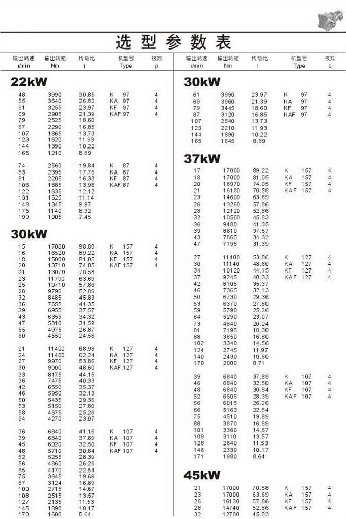 選型參數表22kW (續),30kW ,37kW ,45kW