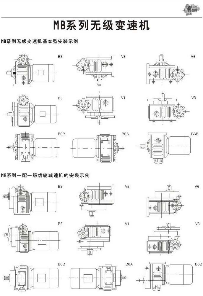 基本安裝示例MB系列一配一級(jí)齒輪減速機(jī)的安裝示例
